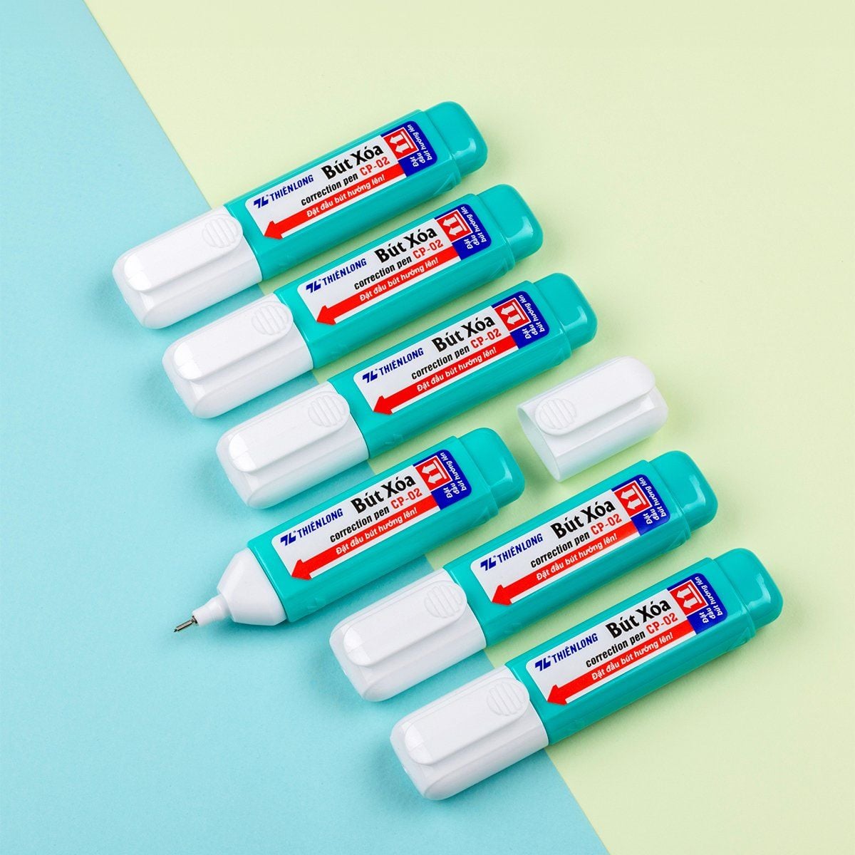 Bút xóa Thiên Long CP-02 có kiểu dáng thân dẹp, vừa tầm tay, thuận tiện khi sử dụng. Cán bằng nhựa màu xanh lá thể hiện sự trẻ trung, năng động. Đầu bút bằng kim loại có lò xo đàn hồi tốt.