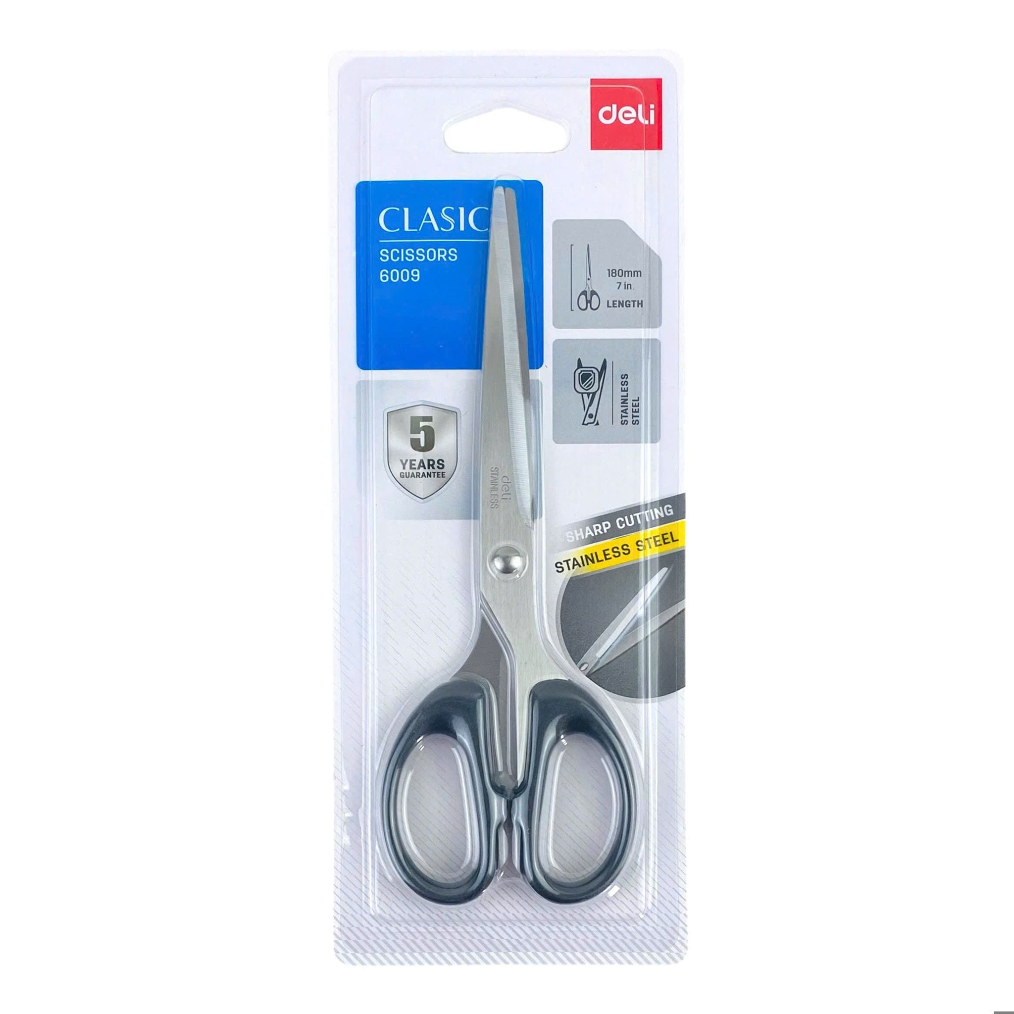 Kéo văn phòng Deli 6009, có phần tay cầm được bọc nhựa giúp bạn dễ dàng cầm nắm, lưỡi kéo làm bằng hợp kim thép cao cấp, sắc bén không rỉ.